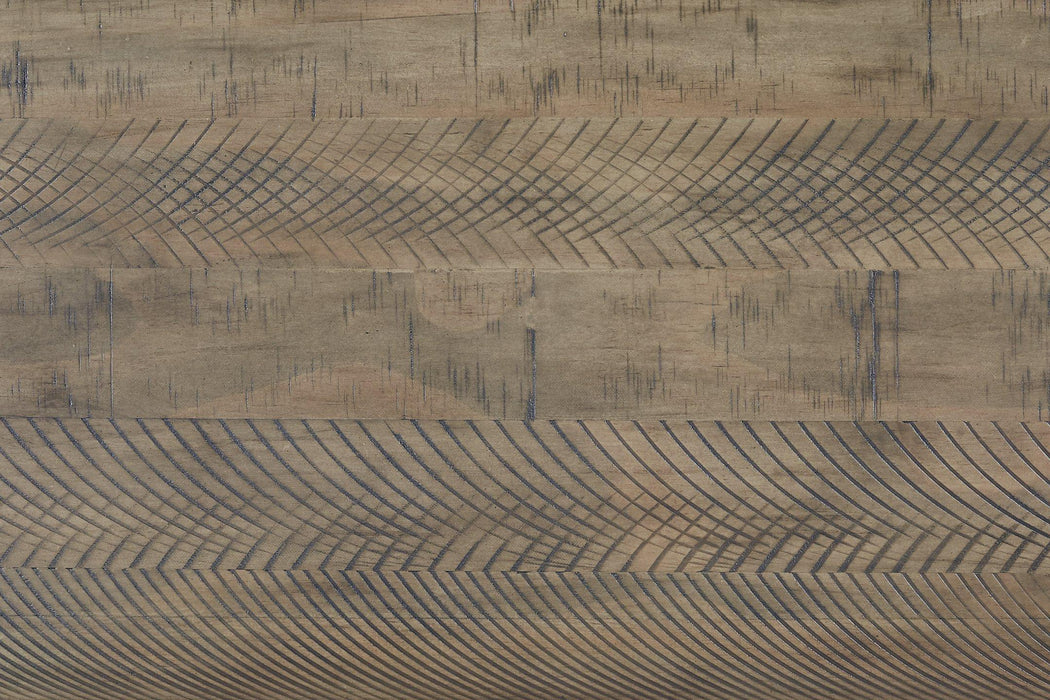 - Weathered gray finish